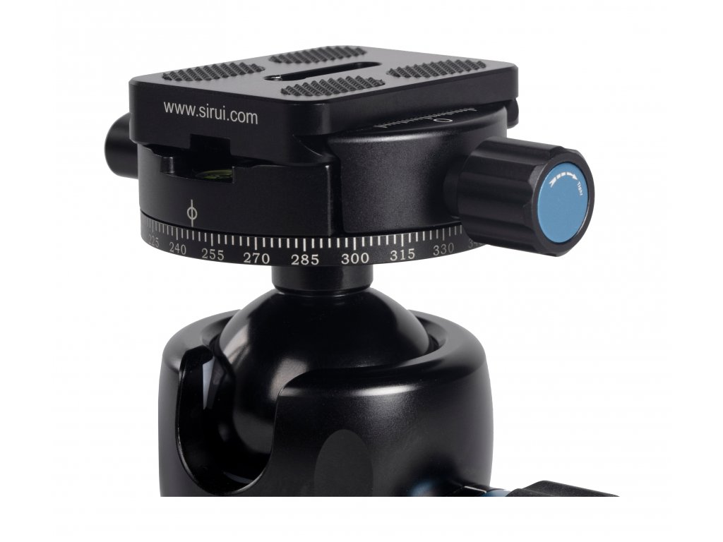 Panoramatická plošina navrchu, posuvná základňa a zvislý zárez sú súčasťou guľovej hlavy, čo uľahčuje vytváranie úžasných panoramatických fotografií.