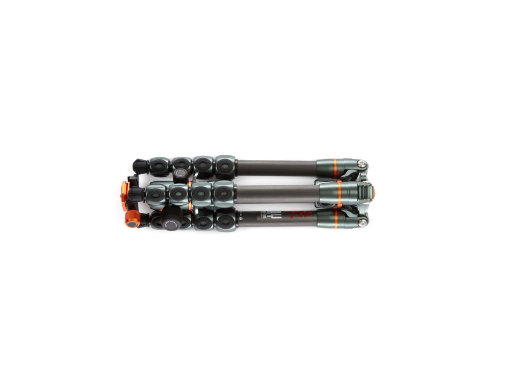 Tvarovaná doska Tri-Mount obsahuje 3 duté ostrohy pre pripojenie popruhu, karabíny či nástroje 3LT Toolz, 6 otvorov so 1/4" závitom pre širokú škálu CSC / DSLR fotoaparátov a kamier a 1 otvorom so závitom 3/8" pre uchytenie mikrofónu i s protiveterným návlekom. Pevná a úplne vyvážená konštrukcia z 8 vrstiev uhlíkových vlákien a z leteckej horčíkovej zliatiny zaistí statívu potrebnú stabilitu za každej situácie. Použité materiály dodávajú tripodu pôsobivý pomer zaťaženia k hmotnosti 24 : 1 vďaka svojej neuveriteľnej nosnosti 40 kg s nasadenou hlavou, takže sa hodí aj pre výrazne ťažšie DSLR fotoaparáty.