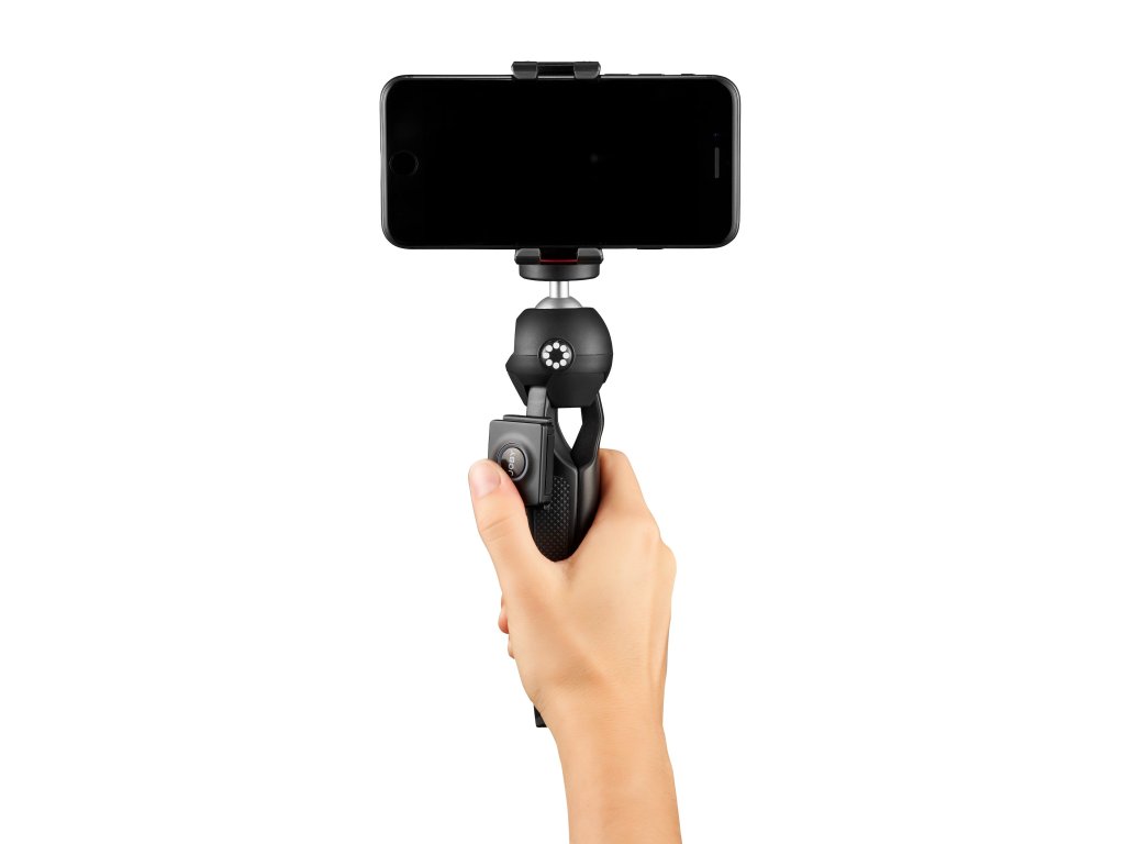 Tlačidlový mechanizmus guľovej hlavy umožňuje rýchle nastavenie a aretáciu v požadovanej polohe vrátane vertikálnej orientácie. Bezdrôtová spúšť Impulse uľahčí tvorbu selfie, skupinových fotiek aj videí z kreatívnych uhlov. Statív unesie zariadenia do hmotnosti 1 kg, takže je vhodný pre väčšinu smartfónov a malých kamier.
