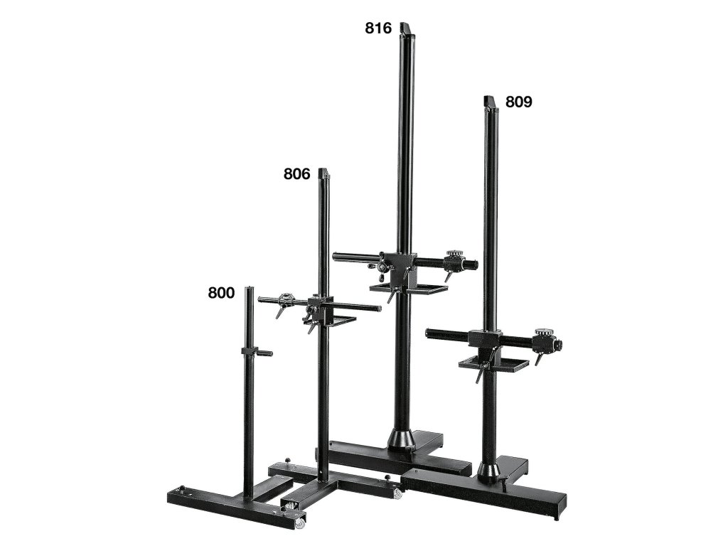 Our Top-of the-Line stand, the Super Salon 280 brings the ultimate in stability to new heights in your studio. The rugged column in mounted on a heavy-duty cast “T” base easy to move around because of its smooth-rolling wheels. They can be locked into position with just one step on the single control pedal. The Super Salon 280 has a 10cm diameter black anodised aluminium column and a 100cm horizontal camera arm that travels 62cm. Arm has precise rack and pinion drive, and is accurately counter-balanced to move smoothly up and down. The camera support platform allows movement in a solid angle of 360°. Supplied with counter-balanced crossarm, camera support platform and accessory tray.Dodatočné parametre