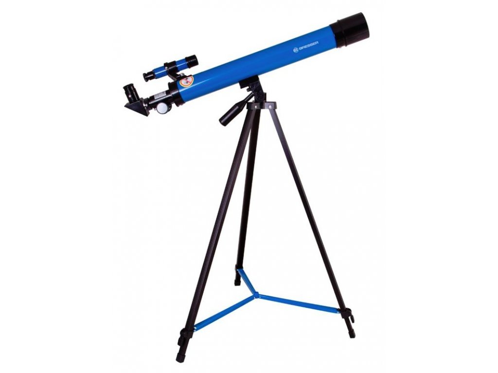 Teleskop Junior Space Explorer 45/600 AZ značky Bresser predstavuje úžasný hvezdársky ďalekohľad pre mladých prieskumníkov vesmíru. Tento úžasne modrý prístroj s dlhou ohniskovou vzdialenosťou je vhodný na skúmanie objektov na oblohe, pozorovanie prírody aj k výučbe základov vesmíru.