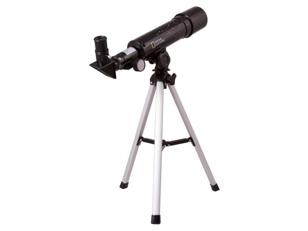 Teleskop National Geographic 50/360 AZ inštalovaný na Dobsonovej azimutálnej montáži je dokonalou voľbou pre dospelého začiatočníka alebo pre dieťa. Táto montáž sa veľmi ľahko zostavuje a nespôsobí problémy ani začiatočníkom. Dosková základňa, ktorá leží v horizontálnej rovine, je teda uchytená otočne okolo zvislej osi, takže pri jej natočení zmeníte azimutálny uhol - Az. Zmenu elevačného uhla, náklonu teleskopu, zaistí rotácia okolo horizontálnej osi. Achromatický ďalekohľad má priemer objektívu 50 mm a ohniskovú vzdialenosť 360 mm.