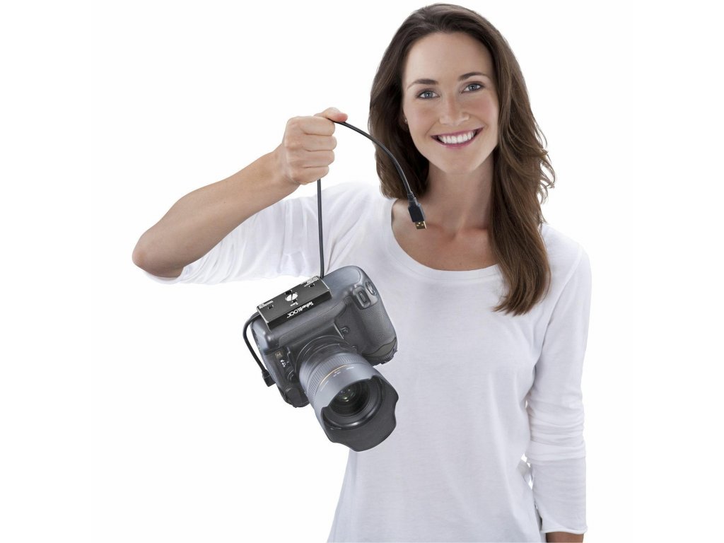 Odtiaľto môžete buď fotografovať z ruky, alebo pripojiť TetherBlock k držiaku statívu fotoaparátu a budete môcť fotografovať pripojení k počítaču bez obáv, že sa váš tethered kábel odpojí. TetherBlock sa ľahko montuje, má vonkajší závit 1/4″-20 na priame pripojenie k spodnej časti fotoaparátu.
