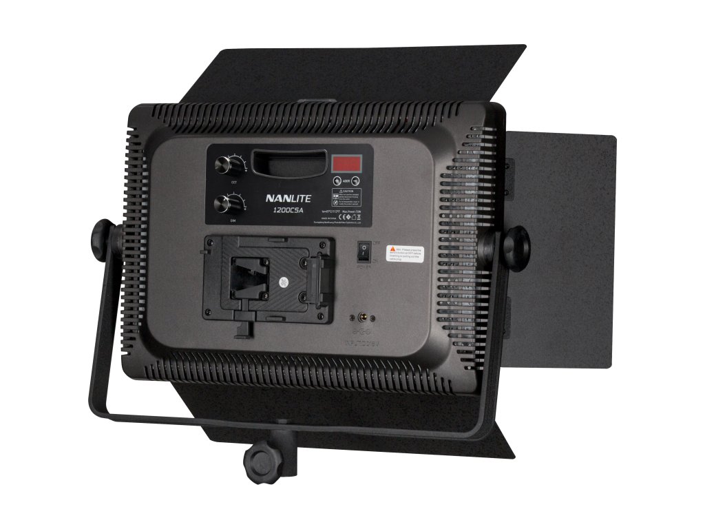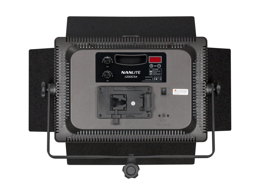 Ovládače smerujúce dozadu vám umožňujú nastaviť jas od 0 do 100% a teplotu od teplého po studený (3200 K-5600 K). Navyše, pomocou priložených dverí stodoly, je možné výkon 1200CSA rýchlo tvarovať a upravovať.