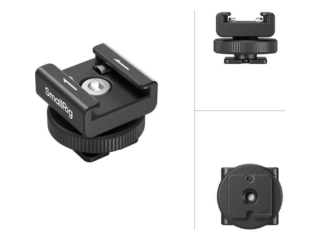 - Odnímateľná spodná cold shoe pätica umožňuje flexibilnú montáž – držiak môžeš použiť priamo na cold shoe alebo cez spodný závit.