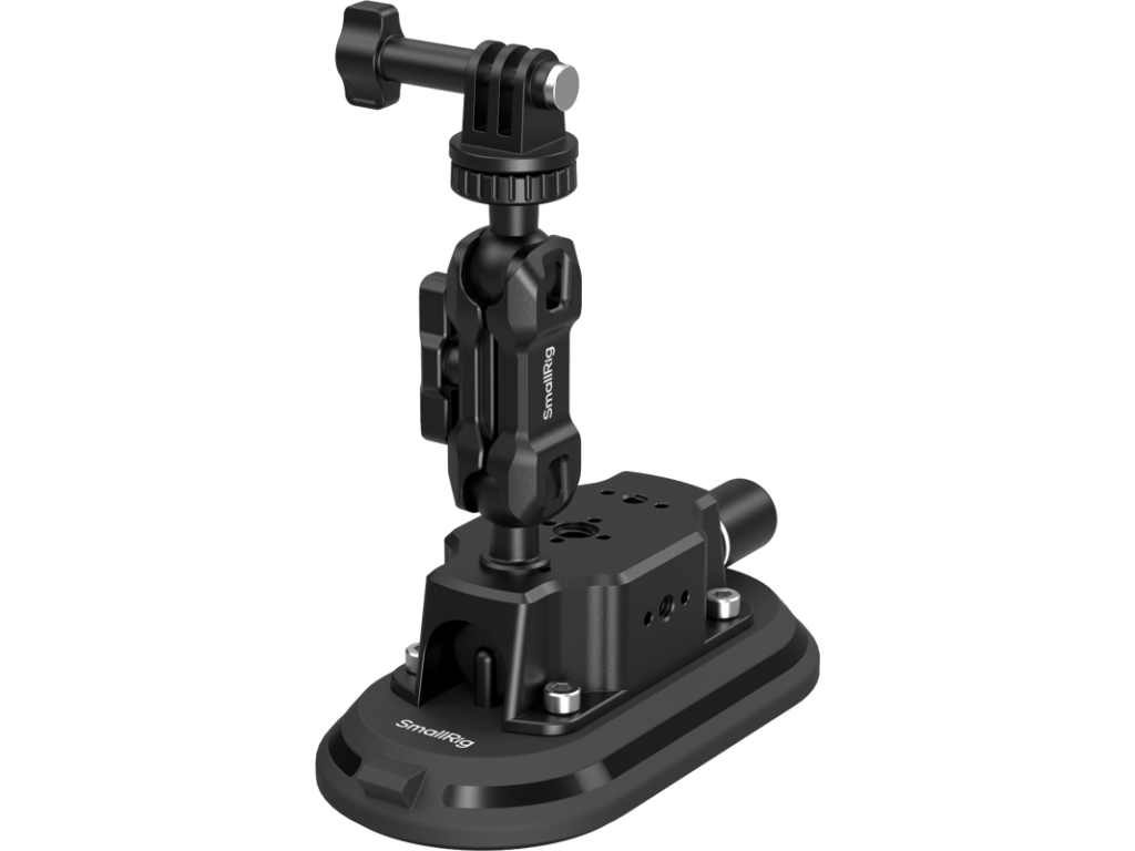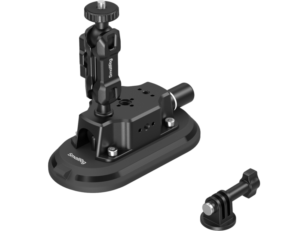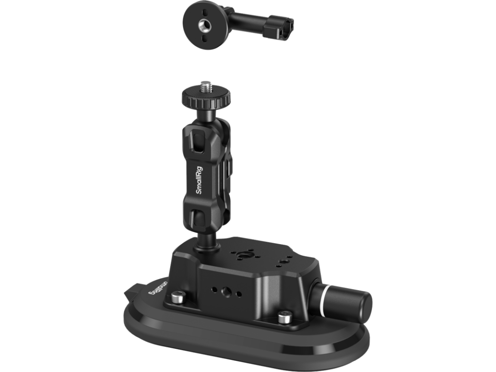 Jeho oválny tvar sa lepšie prispôsobí zakriveným povrchom vozidla než tradičné guľaté prísavky a je určený na čisté, suché a rovné povrchy. Zaisťuje silné prísavné uchytenie a pri použití s priloženým kĺbovým ramenom unesie záťaž až 1,5 kg. Ručná aretácia vákuovej pumpy je vybavená indikátorom bezpečnostnej línie pre spoľahlivú prevádzku, zatiaľ čo priložený ochranný kryt zabraňuje znečisteniu, keď sa výrobok nepoužíva, čím sa predlžuje jeho životnosť. Magické rameno sa pripája k prísavke pomocou závitovej skrutky, zatiaľ čo na jeho druhom konci je možné upevniť akčnú kameru alebo ho kombinovať s príslušenstvom SmallRig pre kompatibilitu so zariadeniami ako DJI Action 6 a Ace Pro 2. Toto usporiadanie je ideálne pre natáčanie vo vozidle alebo časozberné fotografovanie v interiéri.