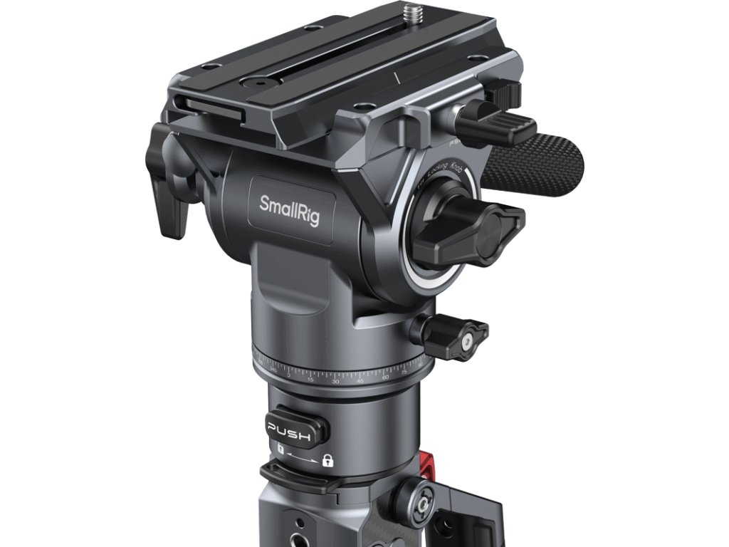 Súčasťou je kompaktná fluidná hlava s odporom vyváženým na záťaž 3 kg a maximálnou odporúčanou nosnosťou 5 kg. Hlava podporuje rýchloupínacie doštičky systému DJI RS a Manfrotto 501PL, čo umožňuje rýchly prechod medzi gimbalom, statívom a monopodom. Horný aj spodný závit (1/4"-20 a 3/8"-16) zaručujú kompatibilitu s rôznymi hlavami a zariadeniami.