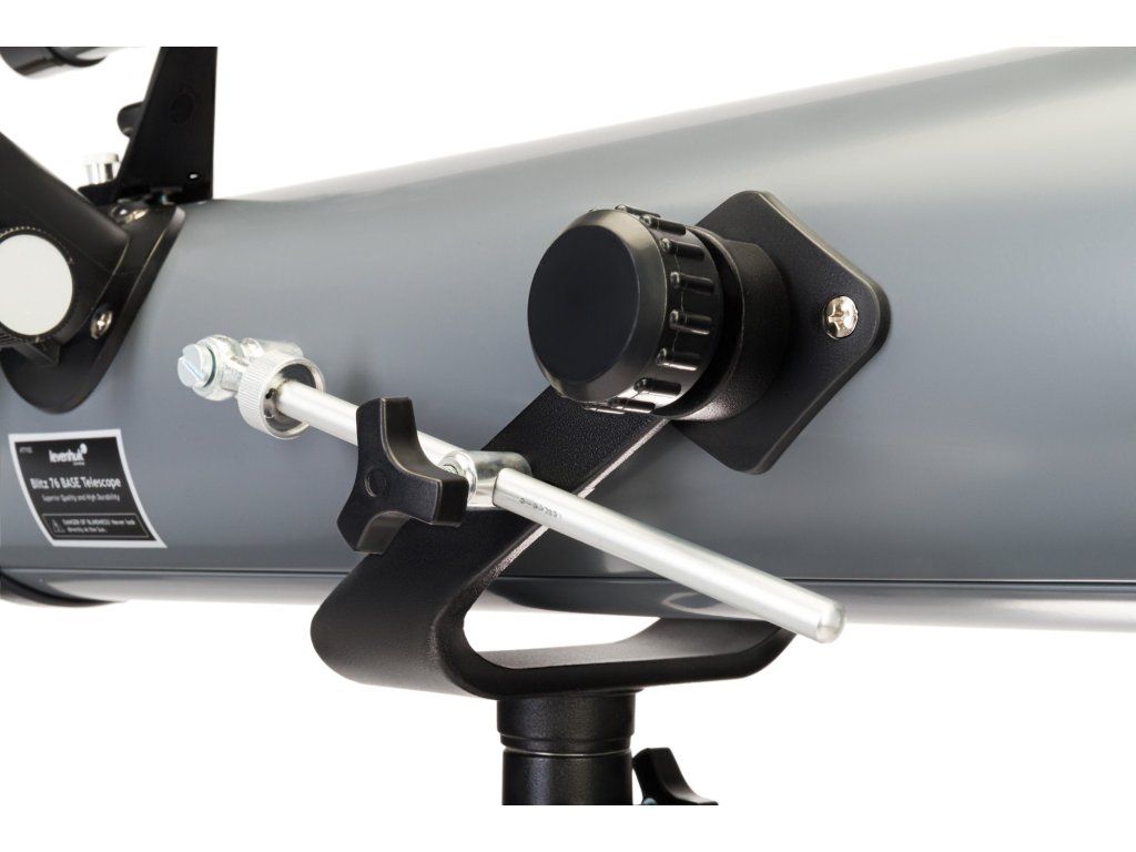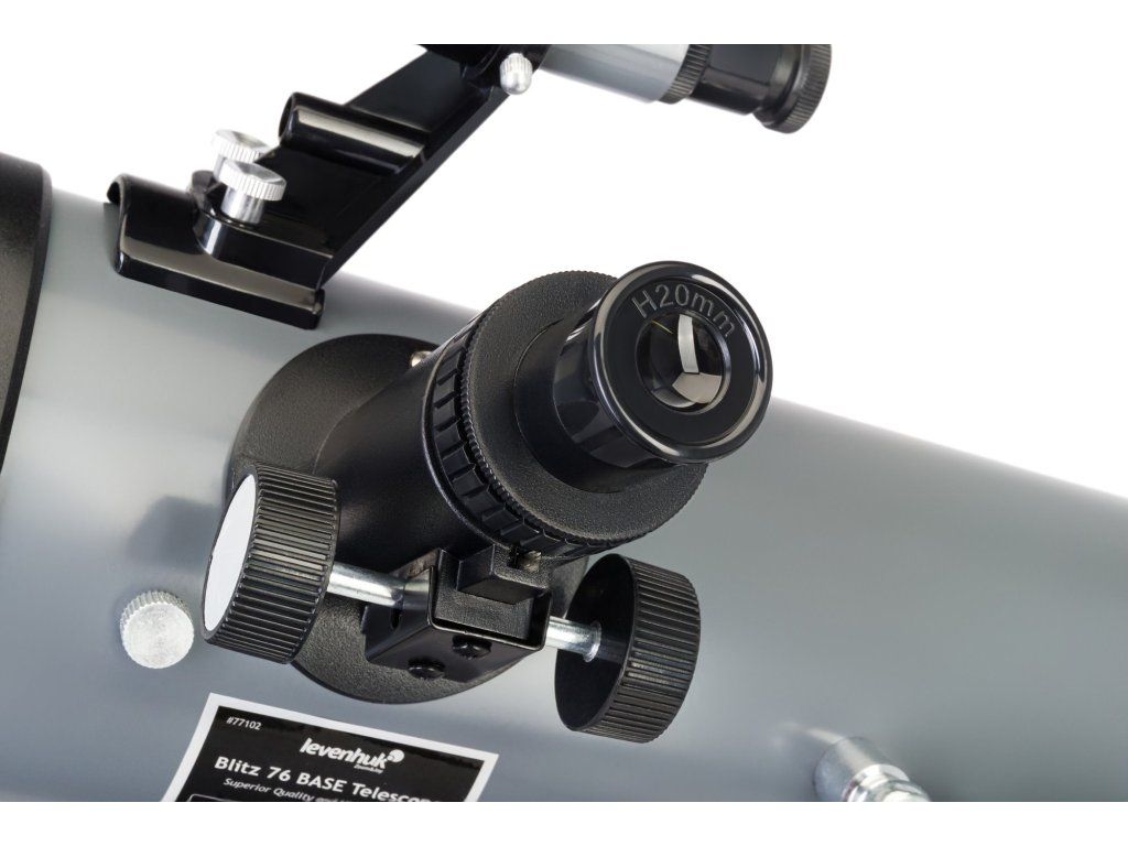 Levenhuk Blitz 76 BASE je základný Newtonov reflektor určený pre začiatočníkov. Vďaka jednoduchej azimutálnej montáži a bohatej sade príslušenstva je vhodný na prvé pozorovania Mesiaca, planét aj jasnejších objektov hlbokého vesmíru.